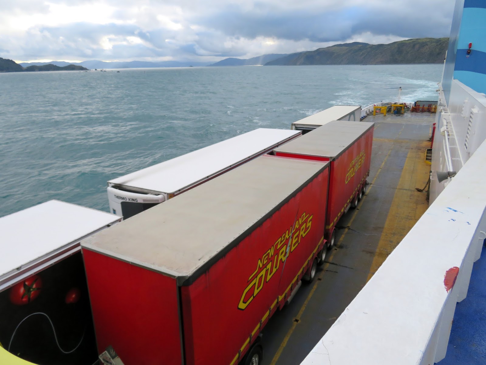 | Loading rail cars onto the ferry on the way back to Wellington |